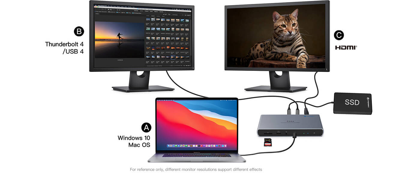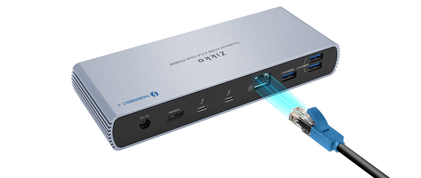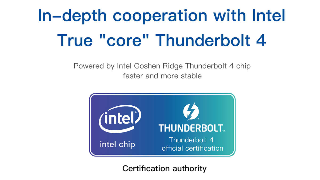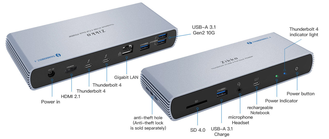 Zikko Thunderbolt 4 / USB 4 Full Dock (Model: M-TBD4096) is a professional-grade docking station, based on the Intel Thunderbolt 4 Goshen Ridge controller, designed to meet the demanding requirements of high transfer rate work. It is not only suitable for Thunderbolt 4 devices, but also backward compatible with Thunderbolt 3, USB 2.0 , VESA Alternate Mode (MFDP) and USB4, and is also suitable for Windows and Mac systems.