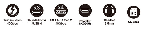 The docking station provides a full power solution with a dynamic PD up to 96W. The equipped Thunderbolt 4 / USB 4 downstream ports can be connected to Thunderbolt and USB-C peripherals, with lightning-like 40Gbps transmission speed and the best performance of high-resolution video output. You can also pass HDMI 2.1 and 2.5GbE Ethernet ports Enjoy single-port video output up to 8K@30Hz, equipped with functions that allow creative professionals and gamers to easily deal with any challenges at work.