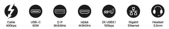 • Thunderbolt 3 Port: Support 40Gbps data transmission, 60 watts max