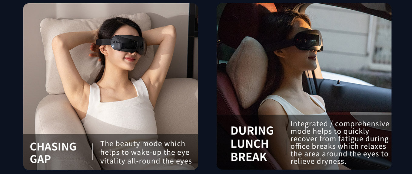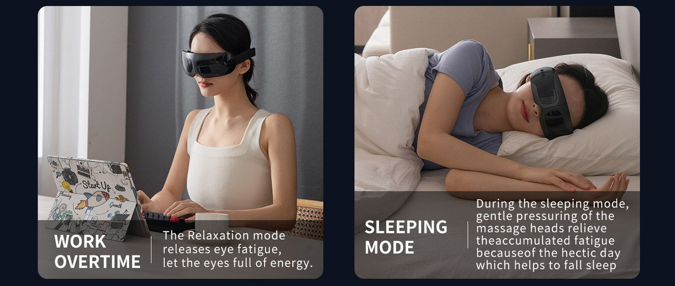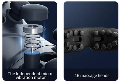 Each massage head are used independent micro-vibration motor, speed up to 10000 rpm 16 massage heads 3D wrap-around massage around the eyes, the vibration directly reaches the orbicularis oculi muscles, which will be quickly relaxing the eye muscles