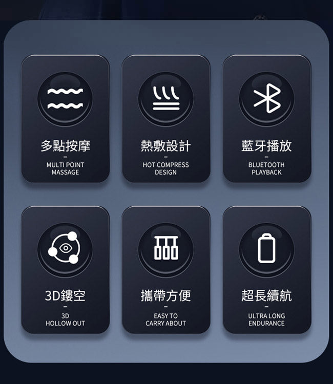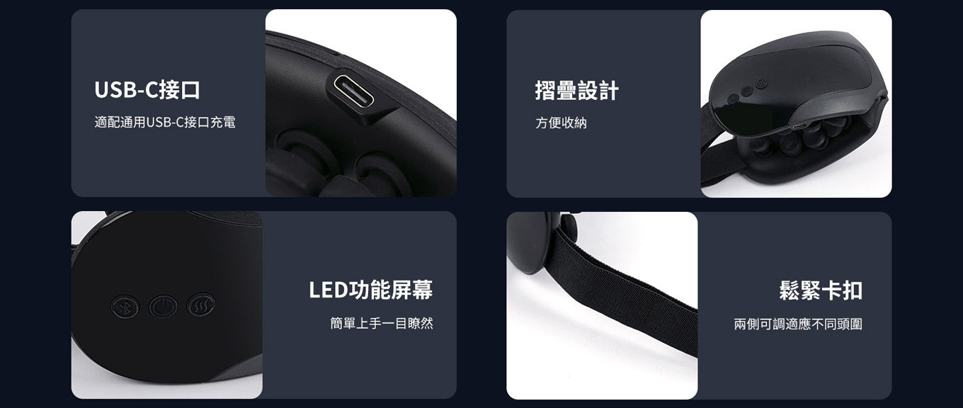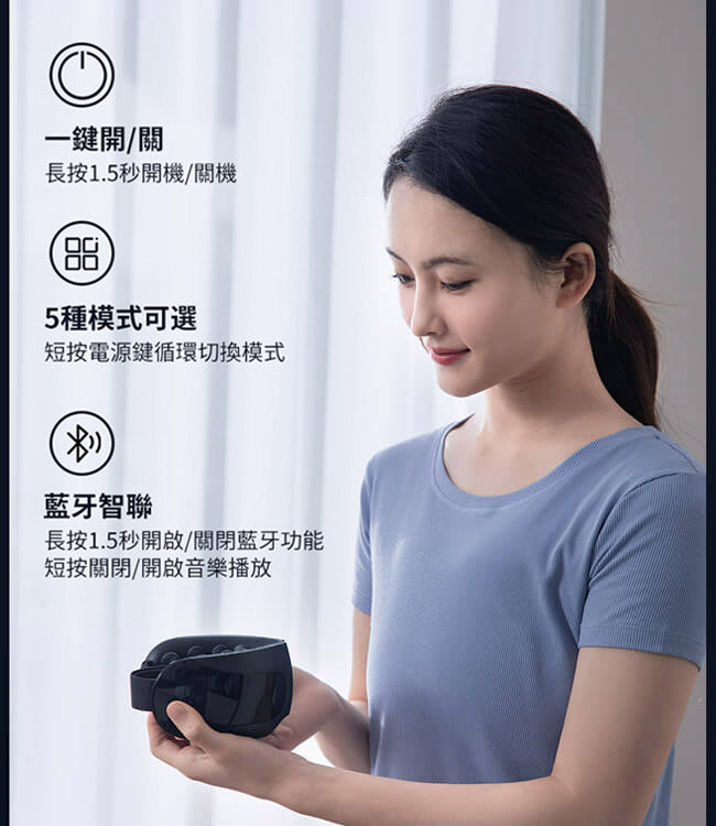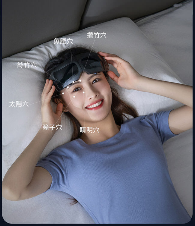 16顆獨立按摩頭  |  40℃恆溫眼袋熱敷  |  藍牙智連音樂隨心