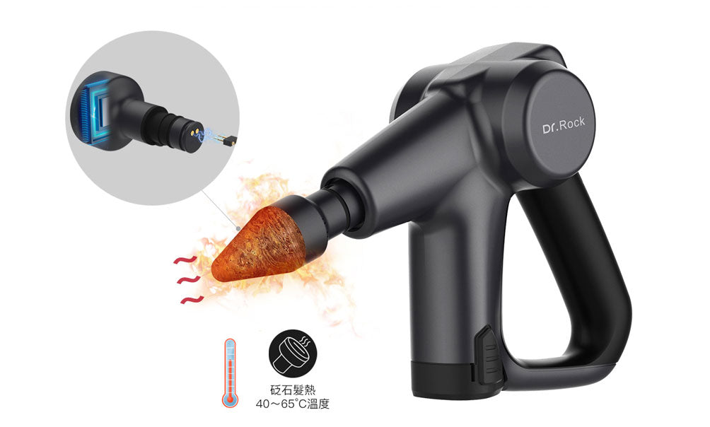 Dr.Rock Air 是一款輕便型的砭石加熱震動衝擊身體按摩槍,發熱的砭石頭,能發出對人體有益的遠紅外線及超聲波脈衝,針對緩解坐骨神經痛、肩周炎、肌肉酸痛、全身經絡疏通等痛症均有顯著的效果。可以變換不同形狀的砭石按摩頭。