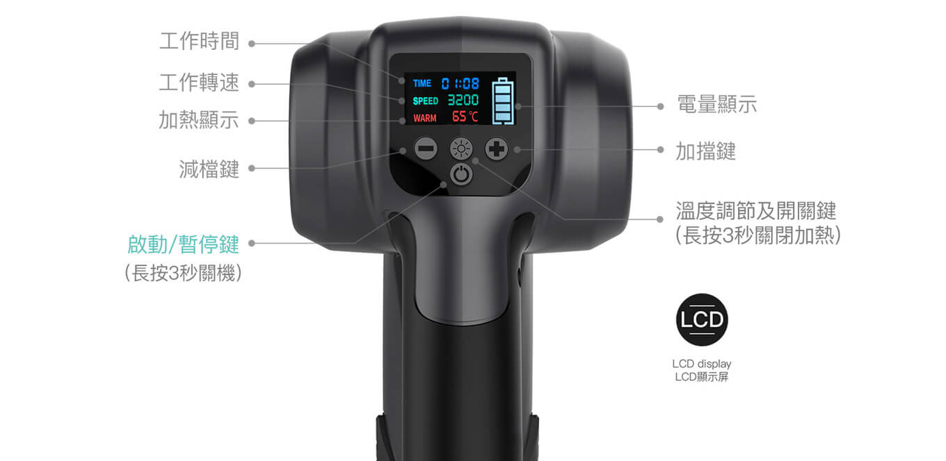 900~3200轉速,加/減檔200轉/按一下增減,細心為您調節適合的每個力度。
